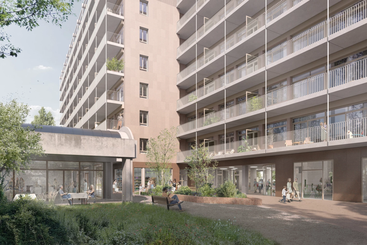 In response to the growing demand for housing in the city of Geneva and the high vacancy rates currently observed in the office market, the commercial building constructed at the Bouchet crossroads in the late 1980s is set to evolve and accommodate residential units. In light of today’s global climate concerns which require a drastic reduction of CO₂ emissions, and in order to minimize environmental impact, the option of demolishing and rebuilding the existing structure was rejected in favor of a pioneering renovation project.