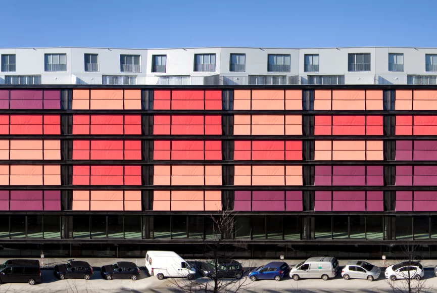 The project focused on the initial building's two courtyards. The north patio, open-air back then, was roofed with a metallic and ETFE structure. Black terrazzo flooring contrasts with the bright walls of the courtyard. This hall improves comfort and circulation flows. In the square-shaped yard on the south side, the library was demolished to build a conference room that can adjust to fit up to 450 people. The space shows specific care in the choice of materials and the design of custom-made lighting and upholstery. The offices and conveniences of the first building by Georges Epitaux also got a lift.