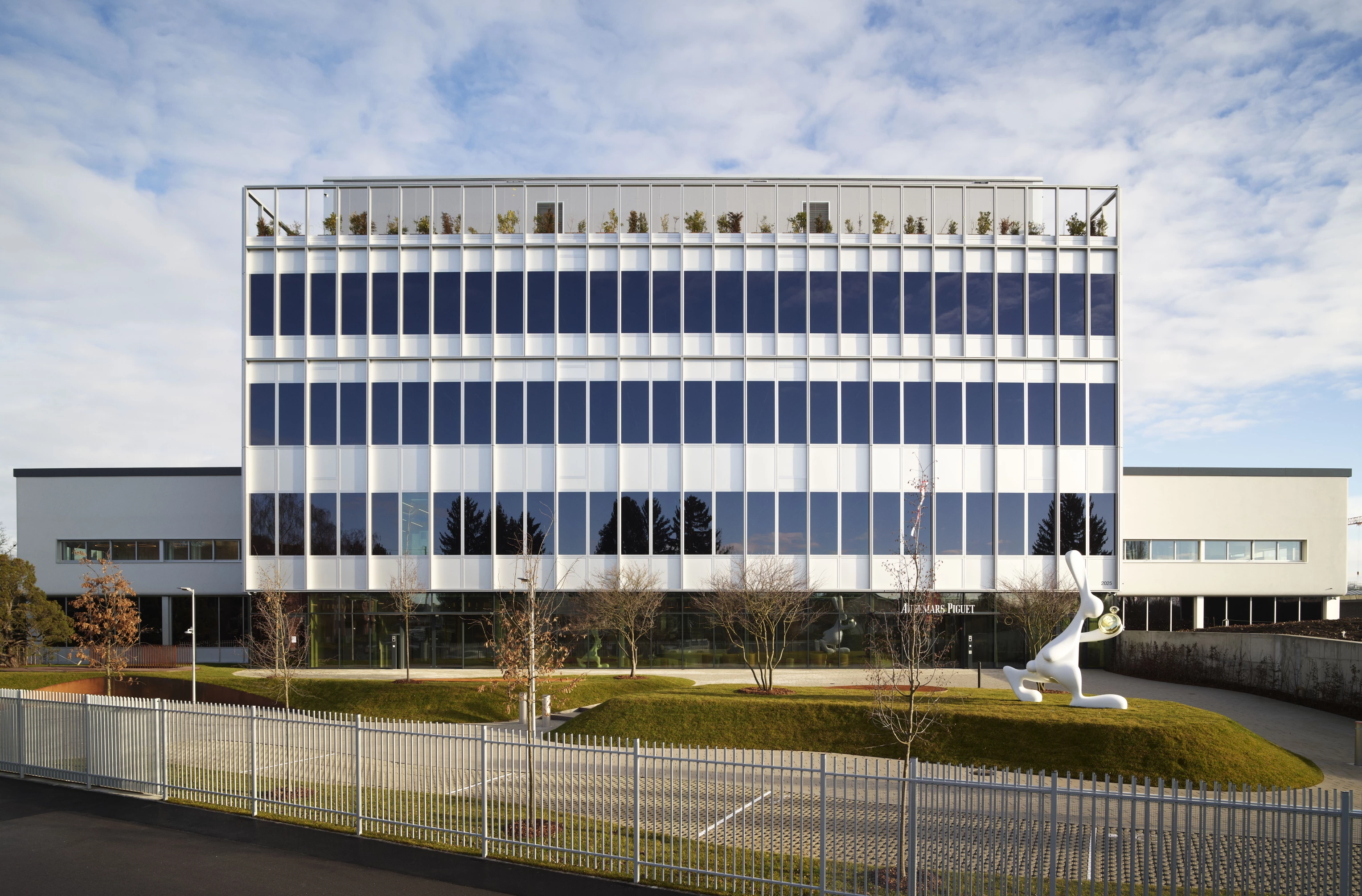 The new Audemars Piguet Manufacture is located in Meyrin-Satigny, on the site of a former industrial building belonging to the pharmaceutical company Uhlmann-Eyraud, constructed between 1963 and 1965. This U-shaped structure—recognized for its historical value and acquired by Audemars Piguet in 2023—has been refurbished to accommodate the activities of the watchmaking manufacture. This reconversion gives rise to a place of production and exchange where industrial heritage and horological innovation meet, expressed through an architecture of precision reflecting Audemars Piguet’s expertise.