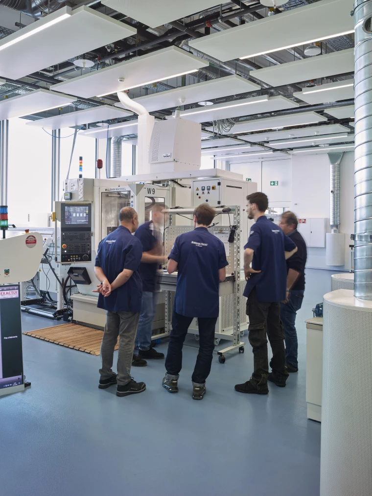 The project follows a logic of responsible and sustainable reconversion, enhancing the existing structure while meeting the specific requirements of a high-performance production facility. This approach reflects Audemars Piguet’s intention to establish a strong local presence, to control the quality of its working environments, and to embody its values of innovation, durability, and precision through architecture. The challenge was to create a new production tool that combines industrial heritage with technological innovation, reinterpreting the existing building into a forward-looking watchmaking manufacture.