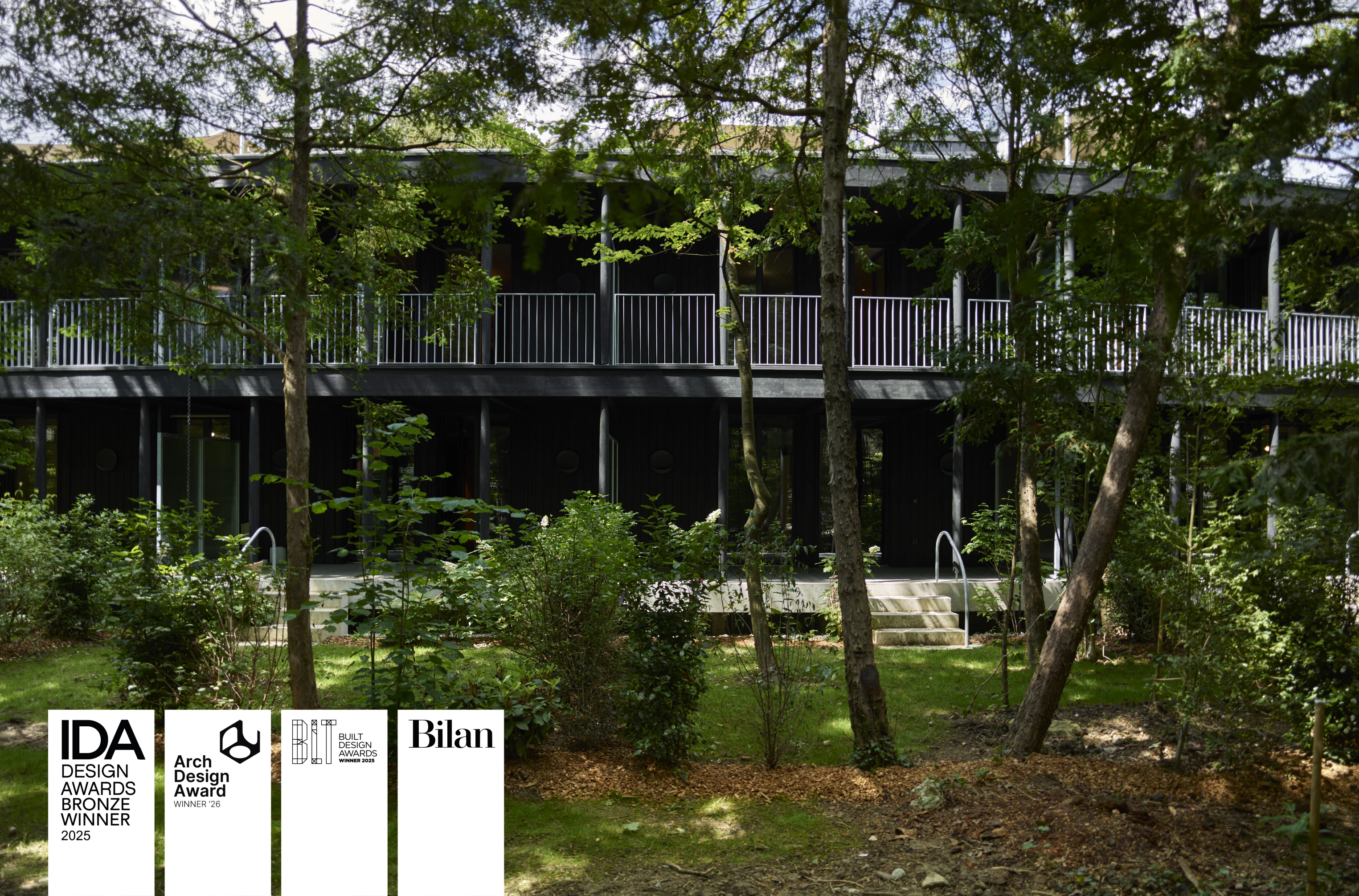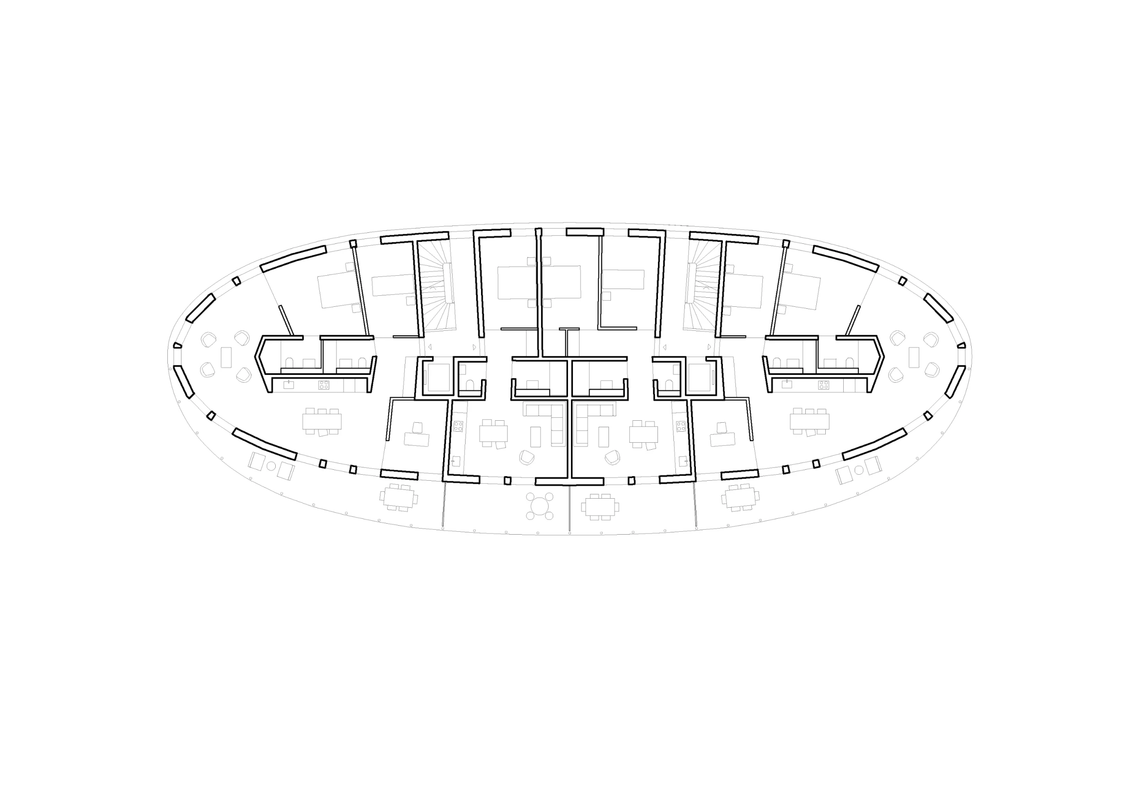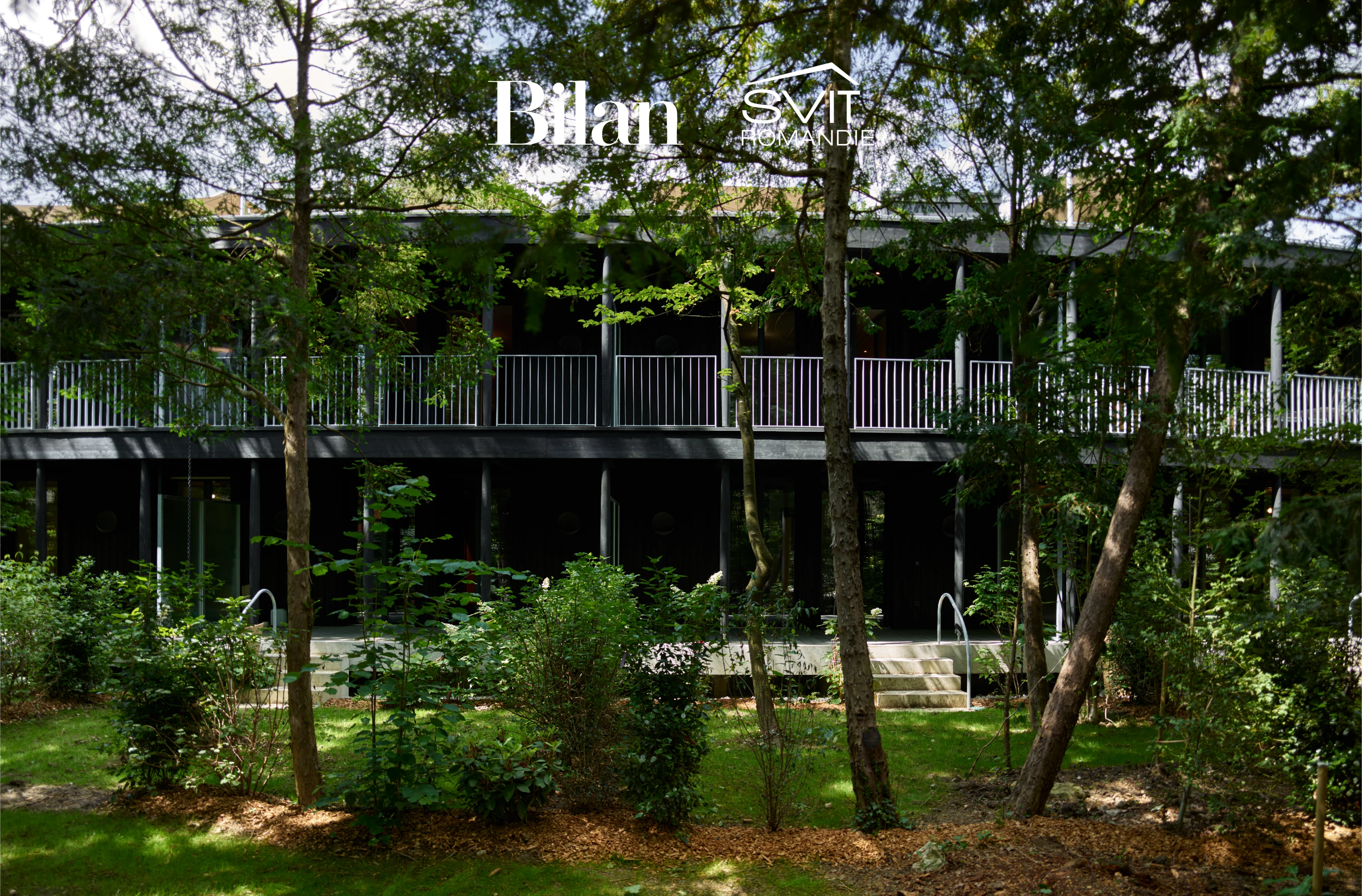 The oval shape was born out of the context: an organic shape placed in a clearing to save the maximum number of trees on site. By opting for this position, the aim was to limit vis-à-vis and visual relation to the street. Instead, the design seeks attractive views of the scenery and adjacent green spaces.