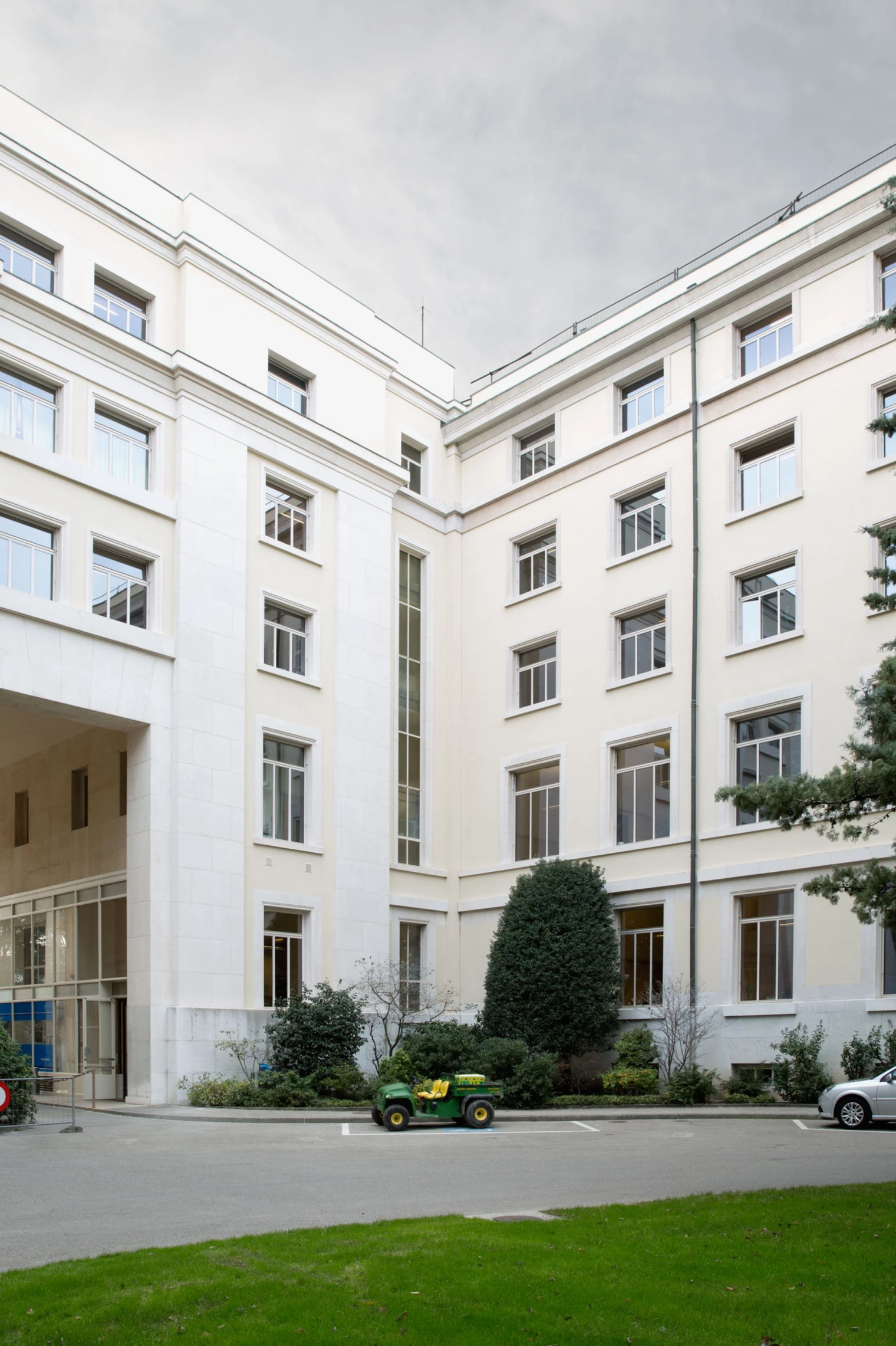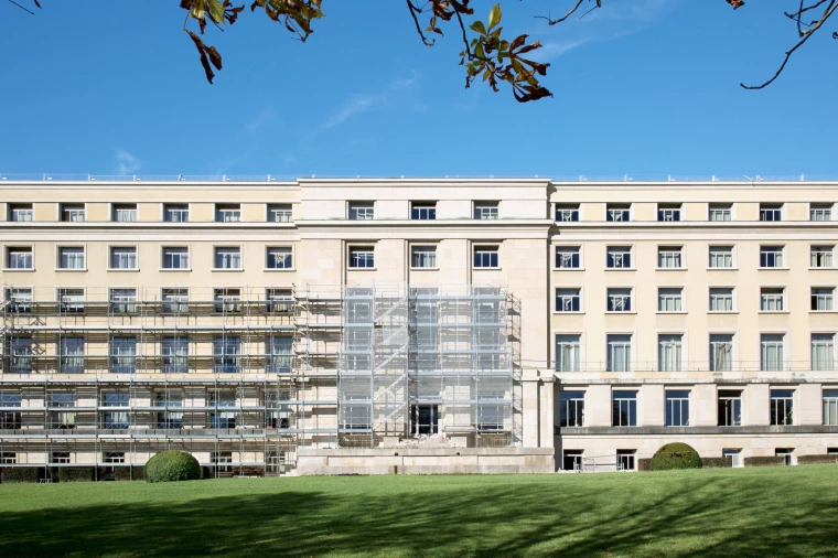 The renovation of the Palais des Nations, developed by our founding partners at group8, is a complex construction project with phasing managed on an operational building in a short amount of time. The renovation focused on improving the building's energical and environmental performance to obtain the Minergie® label and comfort users. The building's envelope advanced with 1050 new windows following the original designs. A large portion of the roof was sanitary engineered, and 2800 m2 of photovoltaic panels and 210 m2 of thermal panels were installed. Architects acknowledged the building's conspicuous architectural heritage for all changes.