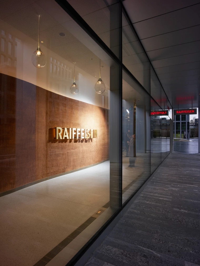 Located in Lancy Pont-Rouge, at the heart of a bustling and metropolitan city district, the project for the new branch and administrative centre of Raiffeisen Bank’s Geneva Rive Gauche employs the use of rammed earth, a friendly and distinctive material that embodies, through architecture, the values of the client: humane, friendly, sustainable, and local.