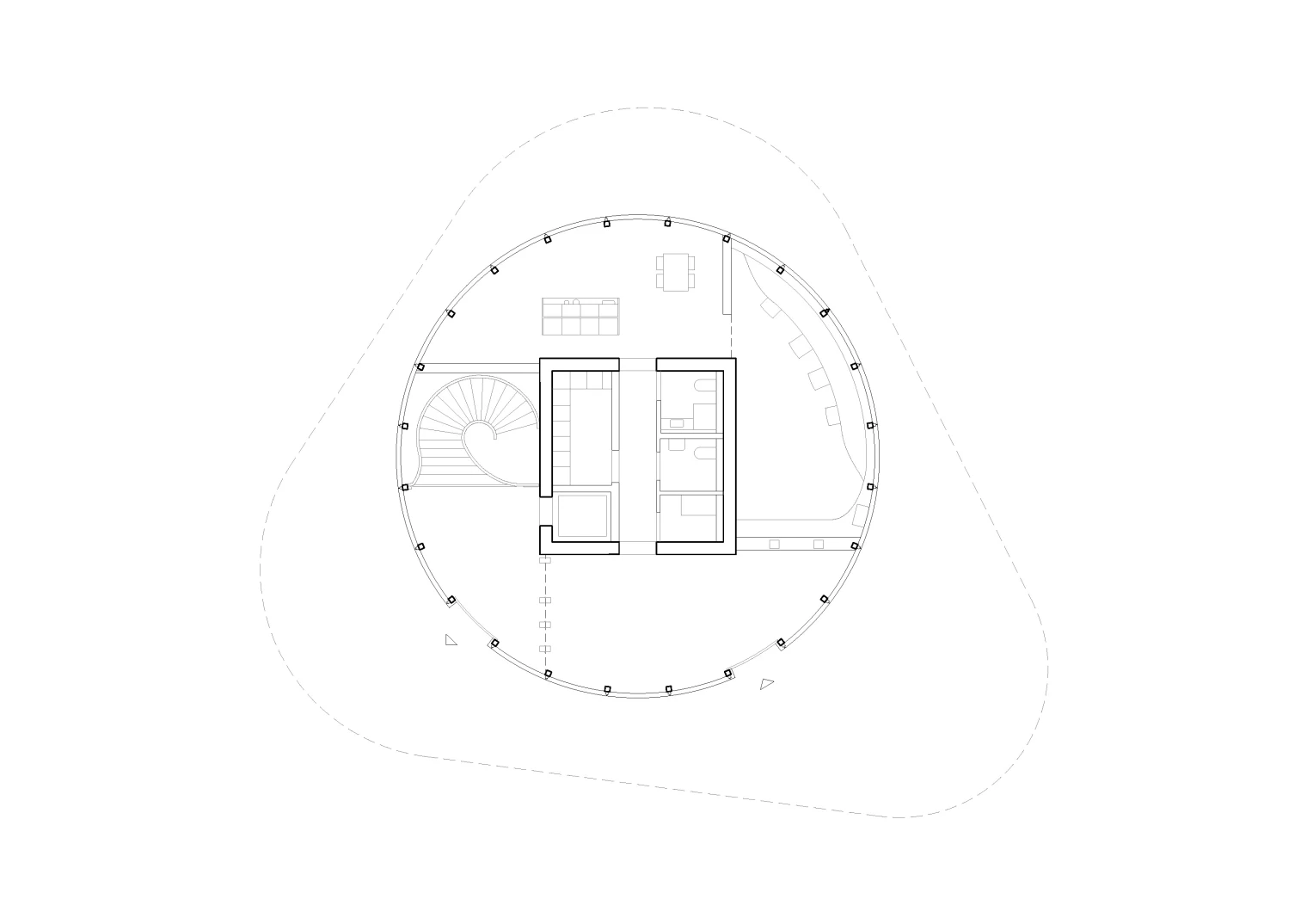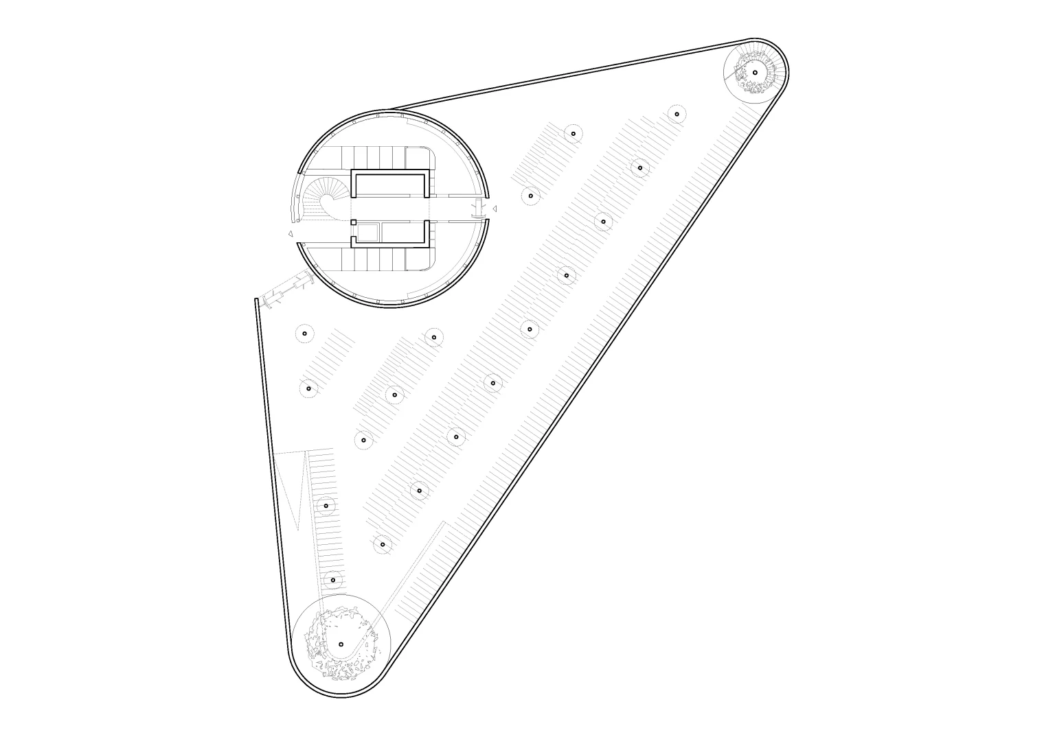 La loge devient centrale, symbolisant l'identité du campus, un point de contrôle et de rencontre. Sa toiture généreuse favorise l'hospitalité, son plan rond évoque l'unité et la créativité.