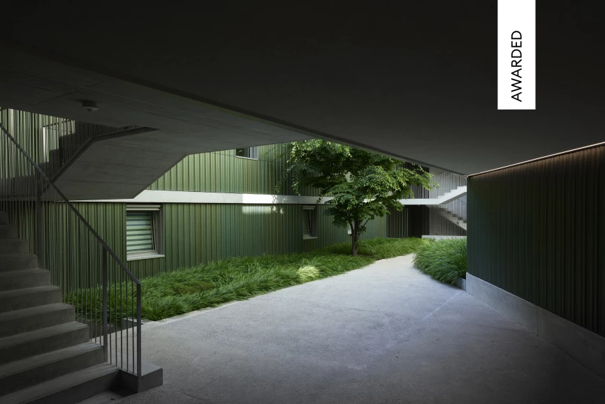 Immeuble de 14 logements à la lisière du plan Acacias Vernet à Pont-Rouge, Lola offre un cadre verdoyant et empli de sérénité le long des méandres de l’Aire. Réalisé par nos associés-fondateurs au sein de group8, le projet s’inspire des données topographiques et naturelles du site.