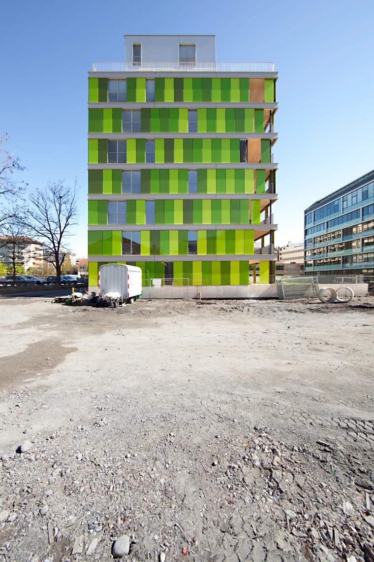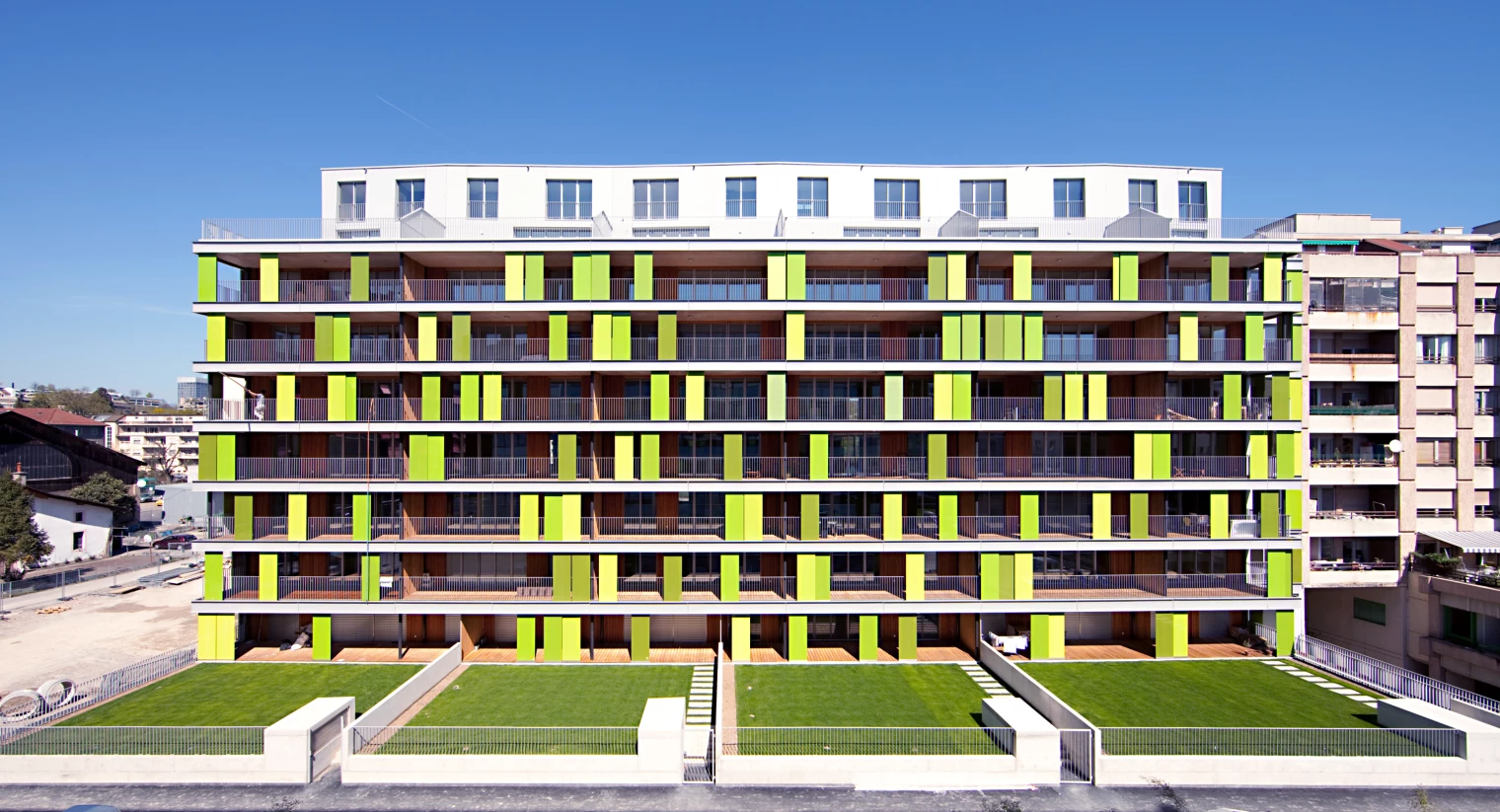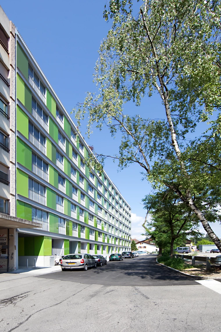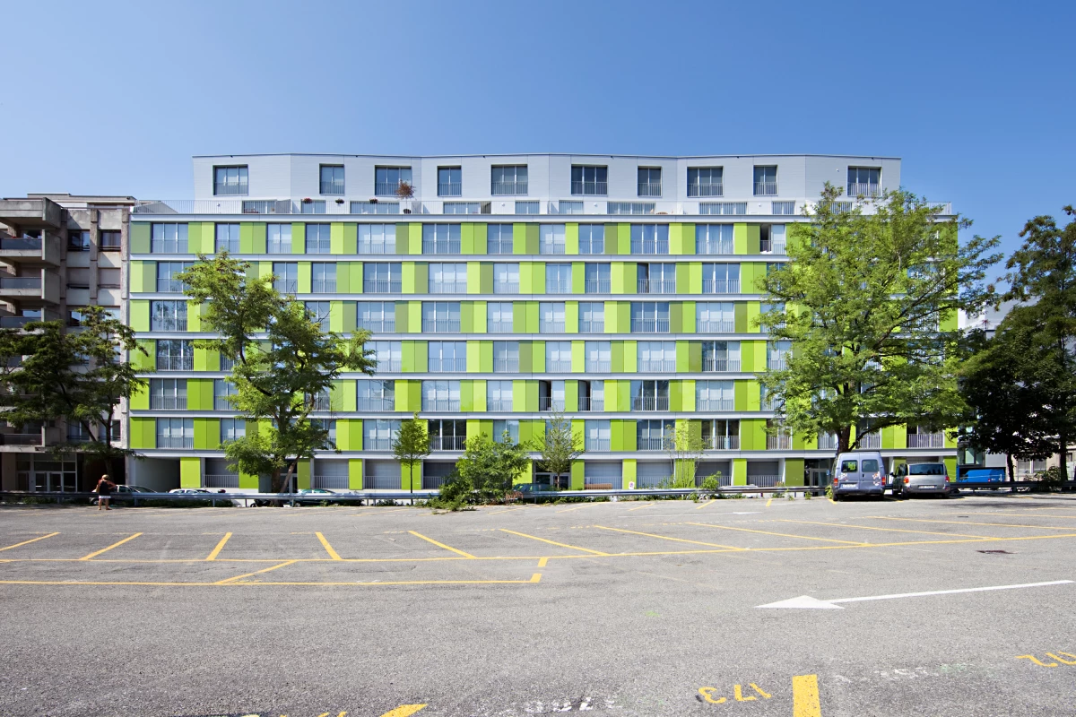 Résidence Bambou est un bâtiment de 46 logements en PPE qui participe avec la Maison Corail à l’aménagement d’un îlot urbain dans un ancien quartier industriel. Conçue par nos associés fondateurs au moment de group8, l’immeuble fait écho à la verdure du parc alentour.