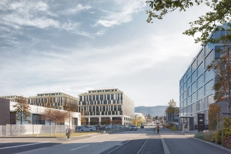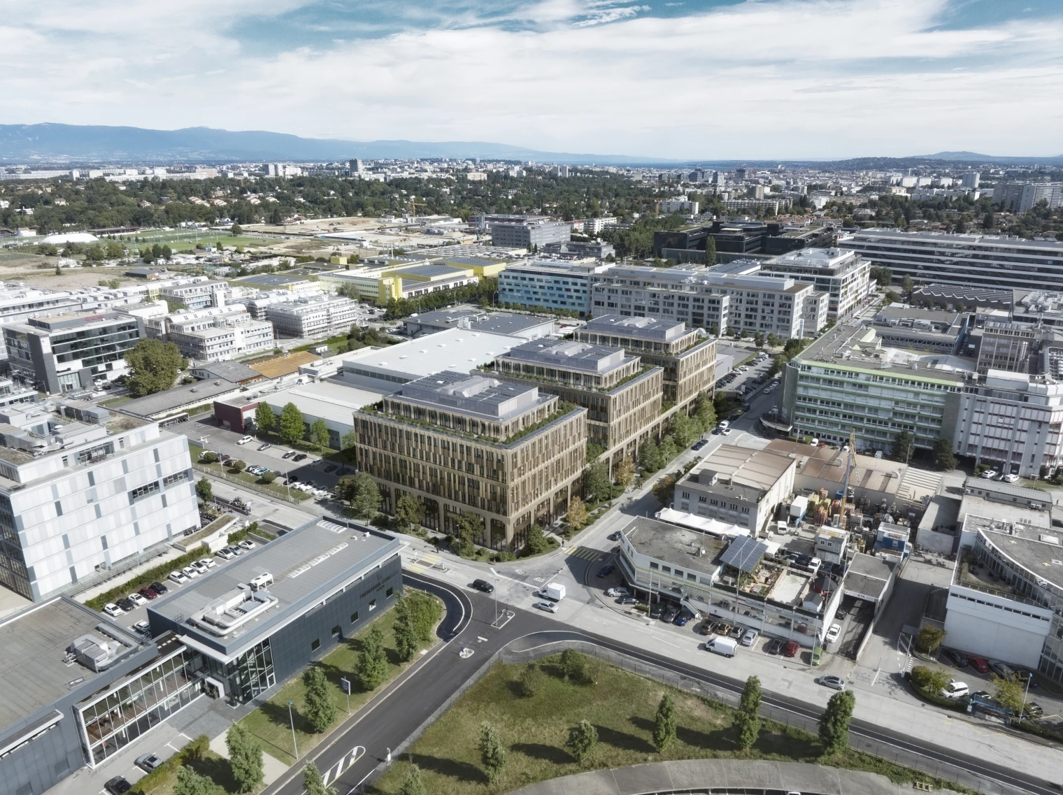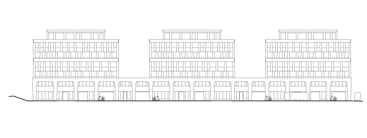 Implanté au cœur de la Zone Industrielle de Plan-les-Ouates, Tribeca investit l’un des derniers vides du quartier pour en révéler le potentiel. Plus qu’un simple bâtiment, le projet affirme une vision : transformer une parcelle évidée en une pièce urbaine structurante, capable d’accompagner l’évolution des activités artisanales et industrielles contemporaines. Pensé comme une architecture unifiée, le volume se compose d’un socle ancré dans le sol, sur lequel émergent trois entités distinctes. Ce jeu de soustraction et de superposition fragmente la masse, libère des terrasses et œuvre des vues, tout en inscrivant l’ensemble dans une écriture industrielle assumée. Le socle, marqué par de larges arcades, évoque la mémoire industrielle du territoire ; les émergences, plus légères, traduisent la dynamique et la flexibilité des usages qu’elles abritent.